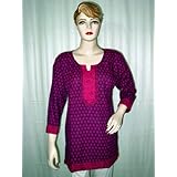 Stylish Womans Bandhani Printed Blue Iris Cerise Pink Cotton Blend Indian Kurti Tunic Medium Size Free Shipping (Apparel)