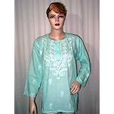 Straight from the Indian designer, get the fusion expression. Exotic round-cut neckline with full sleeves floral embroidered cotton aqua indian kurti tunic.Team them up with formal skirts or wear them to a casual picnic over jeans a kurti is the new word for comfort. These ranges are exclusively bringing out of the latest fashion at most attractive prices from high quality fashion fabrics and keeping in mind the color forecast for the season. Fittings: Please note for these tunics/kurti's it a always a great idea to bid on one or two sizes larger than your actual bust size. For a comfortable fit add 4" to your bust size to find the tunic that will fit you well. For example, if your bust measures 36" buy a tunic with bust measurement of 40" i.e size M. These tunics are not meant to be form fitting and the material is not meant to stretch on your skin. Bust measurement of the tunic is taken from one armpit to the other Read more